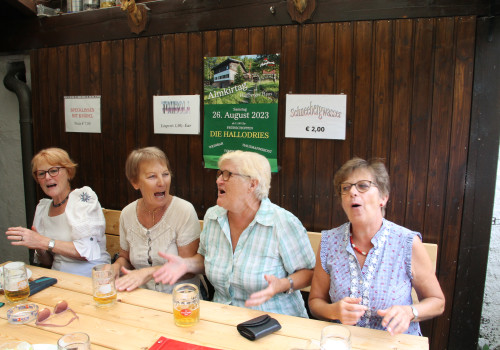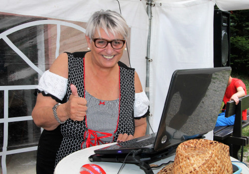 Die Stimmung war ausgezeichnet und es wurde geschunkelt und auch gesungen und getanzt. Die Hallodries wechselten immer wieder den Spielort mal oben auf der Terrasse dann wieder bei der Weinbar. Wenn sie oben spielten, heizte unsere "Susa" den Gästen als DJ ein.