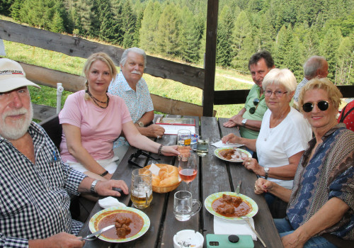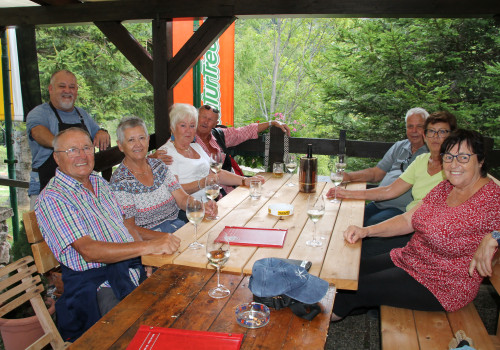 In einem mit 63 Personen gefüllten Reisebus kam man gegen 9 Uhr im Rohrbachgraben an. Nach Stärkung im neuen Lokal "Zur Marie "ging es dann entweder zu Fuß oder mit unserem Shuttle rauf auf das Himberger Haus.